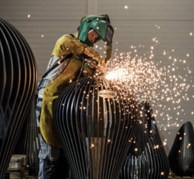 Each piece is made from high-quality corten steel, and while certain elements of the shaping process are supported by precision machinery (for consistency and structural integrity), the finishing, assembly, welding, grinding, and detailing are all carried out by skilled artisans by hand. No two pieces are exactly alike, and every fire pit undergoes a manual quality check to ensure the sculptural aesthetic and finish meet the brand’s exacting standards.